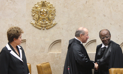 Nesta quinta-feira (22), em cerimônia no Supremo Tribunal Federal (STF), o ministro José Celso de Mello Filho cumpriu a missão protocolar como decano da Suprema Corte de empossar o ministro Joaquim Barbosa como chefe do Judiciário nacional pelos próximos dois anos. Para esta cerimônia, haviam dois mil convidados e a presidente Dilma Rousseff confirmou presença. O senador José Sarney, presidente do Senado, e o deputado Marco Maia, presidente da Câmara dos Deputados, também haviam confirmado suas presenças.