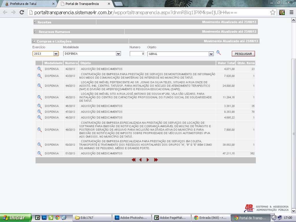 O “Portal da Transparência” mostra que a Prefeitura de Tatuí contratou uma empresa, com dispensa de licitação, no valor de R$ 7.920,00, “para prestação de serviços de monitoramento de informação nos meios de comunicação de matérias de interesse no município de Tatuí”.