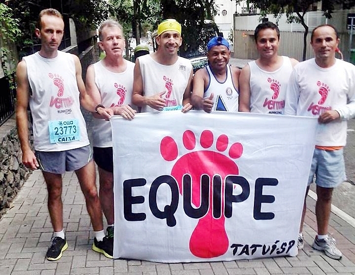 São Silvestre – Dia 31 de dezembro, atletas de Tatuí competiram na tradicional “Corrida Internacional de São Silvestre”, na Capital Paulista. Os integrantes da equipe “Pé Vermeio” postaram fotos e informações nas redes sociais, onde destacam sua presença na 89ª edição desta prova, que teve como vencedores os quenianos Edwin Kipsang (masculino) e Nancy Kipron (feminino). A foto acima mostra membros da equipe “Pé Vermeio” em pose especial, antes do início da corrida. (C/FOTO – Facebook/Eronides dos Santos)