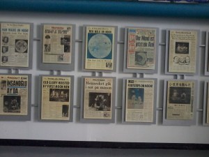 Jornais com notícias da chegada do homem a Lua