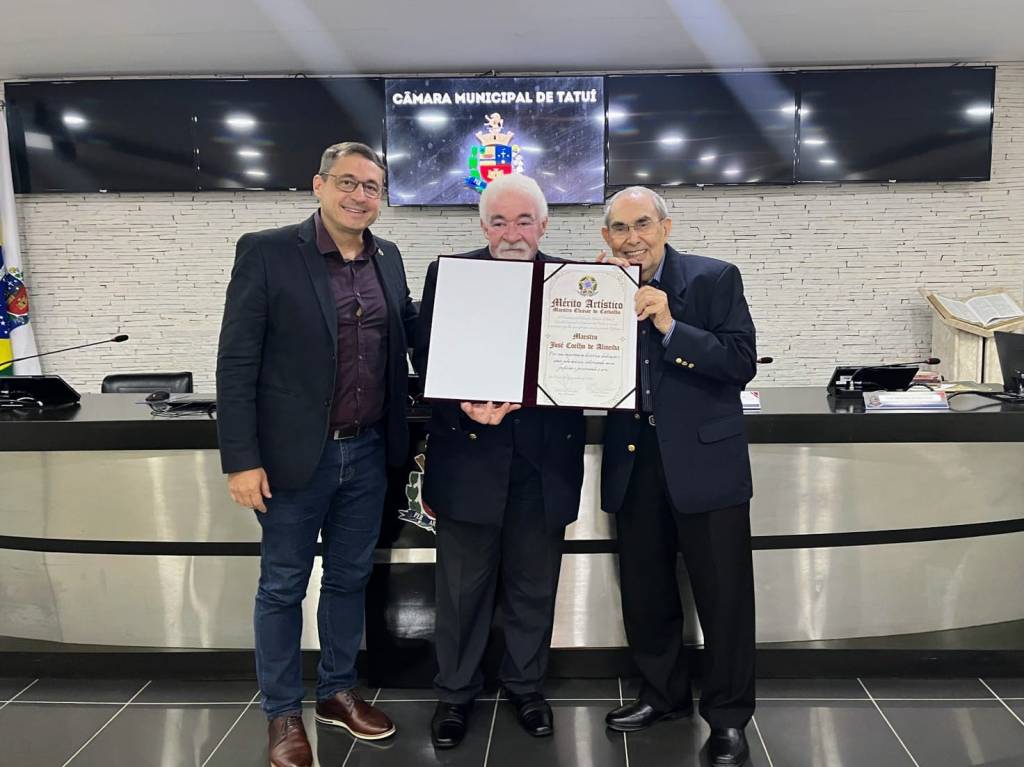Na quinta-feira (29), 15 horas, o maestro e professor José Coelho de Almeida recebeu o Diploma de Mérito Artístico “Maestro Eleazar de Carvalho”, outorgado pela Ordem dos Músicos do Brasil (OMB). A solenidade de entrega ocorreu na Câmara Municipal de Tatuí, com a presença do maestro Roberto Farias, membro do Conselho Regional do Estado de São Paulo da Ordem dos Músicos do Brasil (OMB).