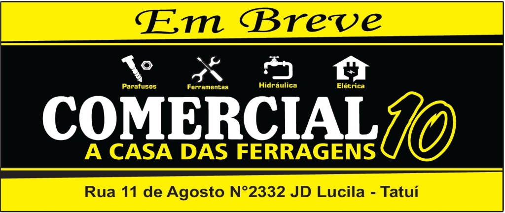 Comercial 10 é a casa das ferragens! Em breve, em Tatuí, a loja mais completa de materiais elétricos, ferramentas e ferragens. Fiquem atentos às novidades! Estamos na Rua 11 de Agosto, nº 2.332, em parceria com a Solar Dez Energia Solar! Aqui você pode confiar! Solar Dez e Comercial 10. É 10 até no nome!