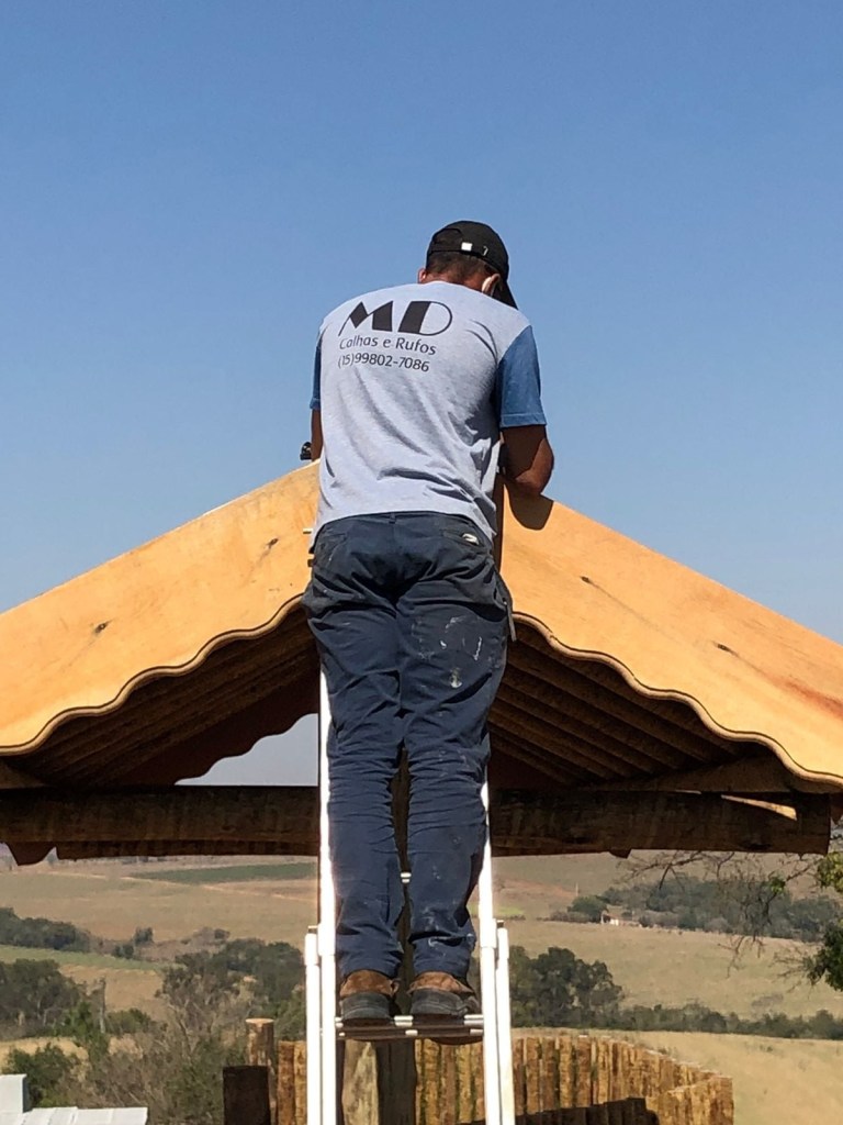 Se você precisa fazer o telhado, dar manutenção, limpeza ou trocar calhas e rufos, a escolha certa é a MD Calhas e Rufos. A empresa atende serviços para telhados residenciais, comerciais e reformas de estruturas metálicas. O casal Marcelo e Danila convida você para tomar um cafezinho e fazer um orçamento. A MD Calhas e Rufos aceita cartões de débito e crédito. Rua Vereador Roque Mota, 51, no Bairro Pacaembu, em Tatuí. Pedidos de orçamento pelo WhatsApp: (15) 99802-7086 ou (11) 99683-2948.