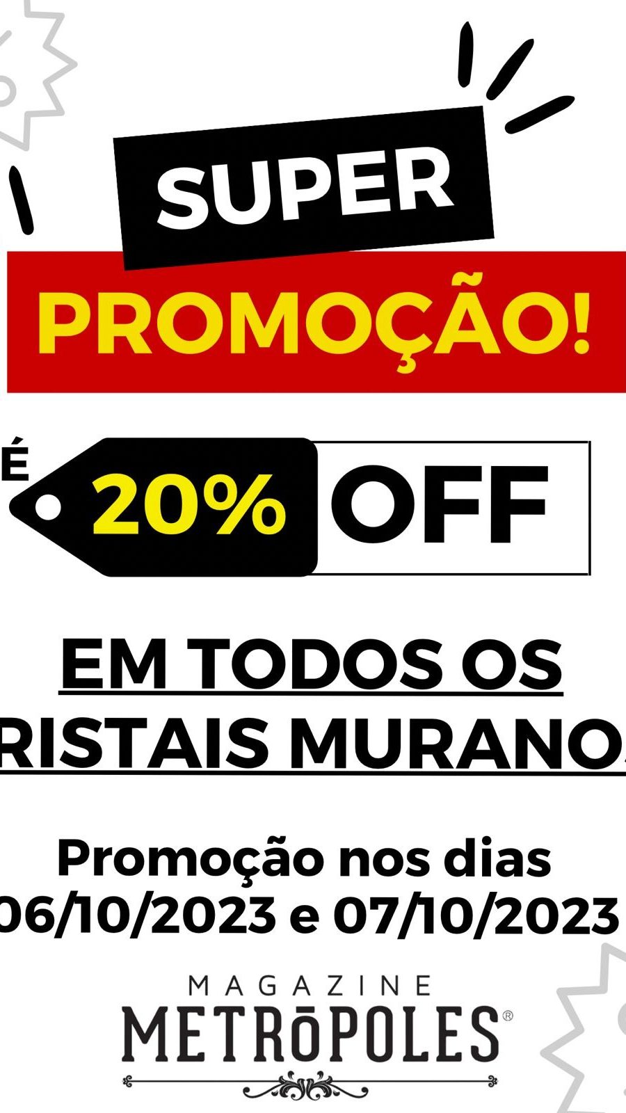 André Pozitel informa que o murano é um tipo sofisticado de vidro, resultado de uma técnica artesanal italiana. Mais luxuoso e raro do que cristais comuns, ele é feito por artesãos especializados, a partir de movimentos manuais e de sopro. O murano é um material extremamente sofisticado. Magazine Metrópoles oferece para seus cliente uma Super Promoção de até 20% OFF em todos os Cristais Muranos nos dias 6 e 7 de outubro. Venha tomar um cafezinho e conhecer essa novidade! Magazine Metrópoles, na Rua Brigadeiro Jordão, 147 (esquina coma Rua do Cruzeiro), em Tatuí. Delivery pelo WhatsApp: (15) 99789-1997.