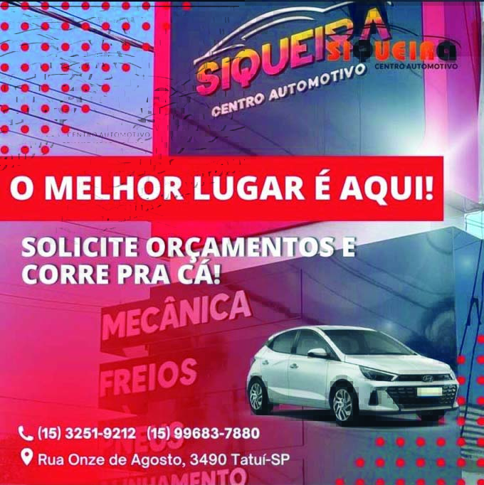 Felipe Siqueira, da Siqueira Centro Automotivo, explica que a revisão veicular é uma manutenção preventiva que assegura o correto funcionamento dos veículos. Esta providência evita surpresas desagradáveis e gastos desnecessários com conserto. Por isso, é tão importante revisar periodicamente o seu carro, para que ele tenha mais tempo de vida e seu valor diminuído consideravelmente. Além disso, diversos problemas mais sérios podem ser identificados antes que comprometam outras áreas do motor, da parte elétrica ou mecânica. A revisão do carro deve ser feita, em geral, a cada seis meses ou a cada 10 mil quilômetros rodados, dependendo de alguns fatores. Manutenção preventiva aumenta a confiança e segurança do veículo. Corra para a Siqueira Centro Automotivo e confira a promoção do mês! Rua 11 de Agosto, 3.490, fones: (15) 3251-9212 e 99683-7880.