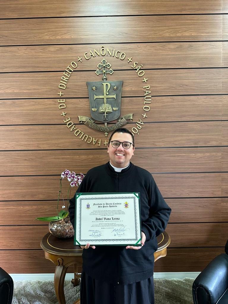 Na segunda-feira (9), o padre André Viana Lerma, pároco e reitor do Santuário de São José Operário, na Vila Esperança, em Tatuí, esteve em São Paulo, onde recebeu o título de Mestre em Direito Canônico, outorgado pela Faculdade de Direito Canônico “São Paulo Apóstolo”.