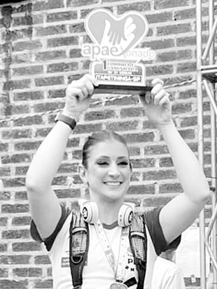 No domingo (15), a atleta Ive Mariana Camargo Sad Belás subiu ao pódio na “1ª Corrida e Caminhada Apaexonado”, promovida pela APAE de Itapetininga, com percurso de sete quilômetros. Ive, que integra a equipe “Pé Vermeio”, representou a APAE de Tatuí, onde leciona, e completou o percurso em 10º lugar, com o tempo de 33 minutos e 27 segundos. Nesta competição, as dez primeiras da categoria geral feminina tiveram direito ao pódio e ganharam troféus.