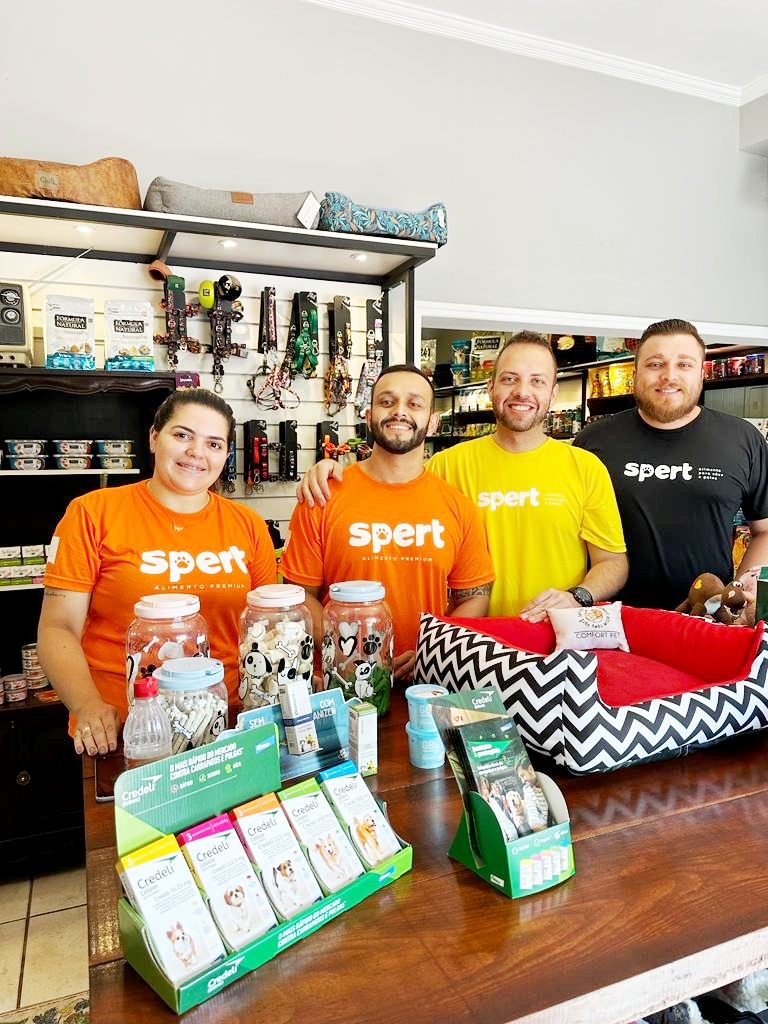 Lançamento da Spert chega na “A Camponesa”! Os produtos são produzidos desde 2012, em Santa Cruz do Rio Pardo, com um processo industrial moderno, de alto grau de automação, extremamente comprometido com a qualidade, segurança e ética em cada etapa do processo produtivo. Na foto, Giovani e Carol, com Dionatas e Pablo, representantes da Spert, agendam o lançamento com exclusividade desta marca. Com suporte do veterinário responsável, a Camponesa garante o cuidado ideal para seus pets! A Camponesa. Aberta de segunda a sexta, das 8 às 19 horas, sábados, das 8 às 14 horas, e domingos, das 9 às 12 horas. Rua Rotary Club, 491, Tatuí. Fones: (15) 99825-9627 e 99186-4728.