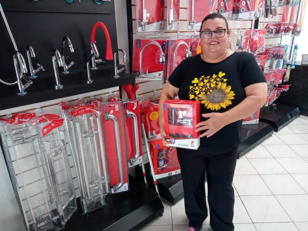 A Marmoraria Soares garante qualidade em toda linha de produção. Sara, na foto, anuncia que chegaram novos produtos da marca Leão: puxadores de porta, barra de apoio de banheiros para dar mais segurança aos idosos, ducha higiênica, ralos, chuveiros para gás natural e muito mais, venha nos fazer uma visita, tomar um cafezinho e conhecer as últimas novidades e a tendência dos metais sanitários. Transforme seu banheiro em um oásis de conforto e estilo. Marmoraria Soares. Rua Teófilo Andrade Gama, 1000, Tatuí. Fone: (15) 99198-1308.