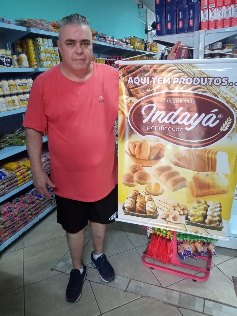 Marcelo Rodrigues (foto), do Mini Mercado Vieira. O estabelecimento revende a linha completa de produtos Indayá. Pães e biscoitos doces ou salgados, panetones e chocotones e outros alimentos que faz parte da linha de fabricação da marca mais deliciosa de Tatuí. Mini Mercado Vieira fica na Rua Professora Adelina Ribeiro, 106, Vila Santa Adélia, Tatuí. Fone: (15) 99797-1940.