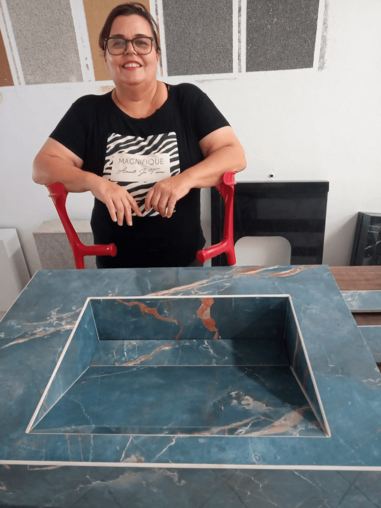 Sara (foto) anuncia que preparou mais uma novidade para seus clientes. Aqui na Marmoraria Soares temos trabalhos com porcelanato, nosso forte é o detalhe do acabamento de nossas peças lindas. Aqui o porcelanato vira obra de arte! Venham nos visitar ou entre na nossa página do Instagram. Faça uma visita e conheça os produtos para o novo visual da sua casa estão na Rua Teófilo Andrade Gama, 1000, Tatuí. Fone: (15) 99198-1308.