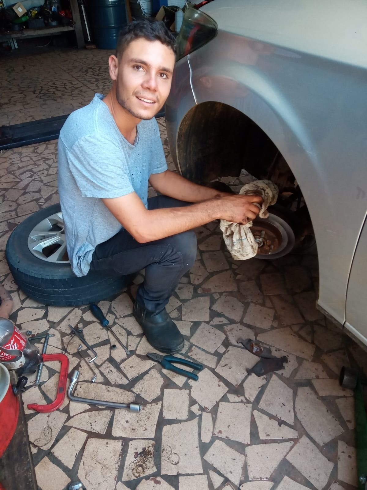 Cuide sempre da manutenção do seu veículo. Wlamir Siqueira informa sobre a importância da revisão no sistema de freios. Na oficina, o mecânico verifica e avalia o estado e a necessidade de manutenção corretiva ou preventiva dos componentes dos sistemas de freios dianteiro e traseiro. Esta revisão deve ser feita duas vezes ao ano ou quando o veículo apresentar diferença ao acionar o pedal. O carro apresenta perda da capacidade de frenagem, ruídos estranhos, como ferro com ferro, pedal com curso longo, duro, descendo com roda presa ou quando, ao dirigir, puxa para o lado. Na foto, o mecânico Leonardo Paques faz revisão de freio dianteiro com troca de pastilhas de um Chevrolet Onix Lt. As melhores marcas, pelos menores preços estão na Auto Peças Siqueira. Rua 11 de Agosto, 2040. Tatuí. Fones: (15) 3205-3007 e 99807-3007.