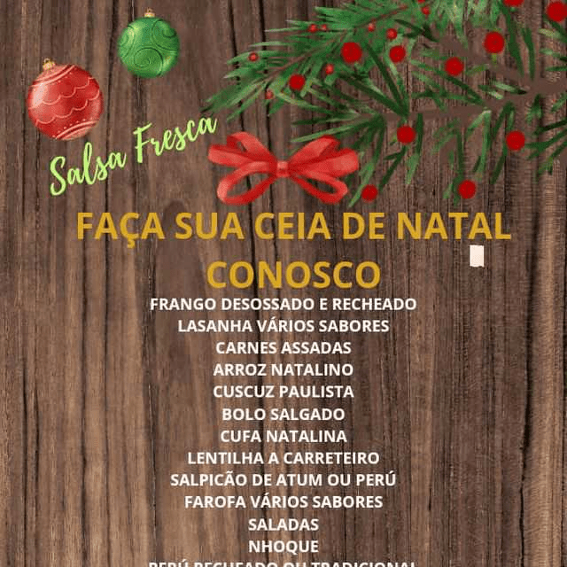Chef Pagotto informa que a Salsa Fresca Tatuí é a melhor opção para para reunião de confraternização de sua empresa. Faça a sua reserva. E a casa aceita encomendas para sua Ceia de Natal. Escolha o Cardápio Especial de Natal e deixaremos você sem trabalho e com aquele sabor em sua mesa. Temos várias opções. Mas, se você tem algo que gostaria e não está em nosso cardápio, não se preocupe. O Chef Pagotto está às ordens, para fazer o melhor para você, seus convidados e sua família. Salsa Fresca Tatuí Sempre Pensando em você! SE É FEITO POR QUEM AMA ! É AMADO POR QUEM COME ! Salsa Fresca serve de sábado a quinta feira, das 18 horas às 23 horas. Rua Chiquinha Rodrigues, 138. Vila Dr. Laurindo – Tatuí. Ao lado da Estação Ferroviária. Fone: (15) 99730-2220.