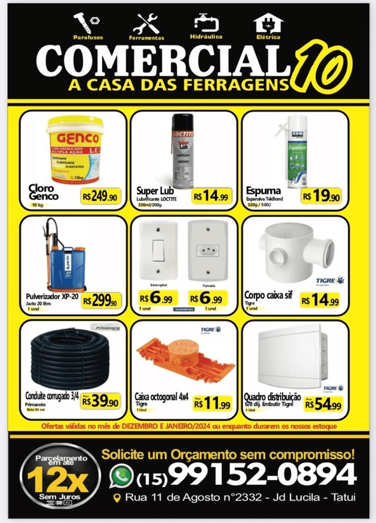 Ofertas imperdíveis para sua casa, você encontra na Comercial 10. Disk entrega (15) 99152-0895. A loja fica na Rua Onze de Agosto, 2332, ao lado da Solar Dez. Tatuí.