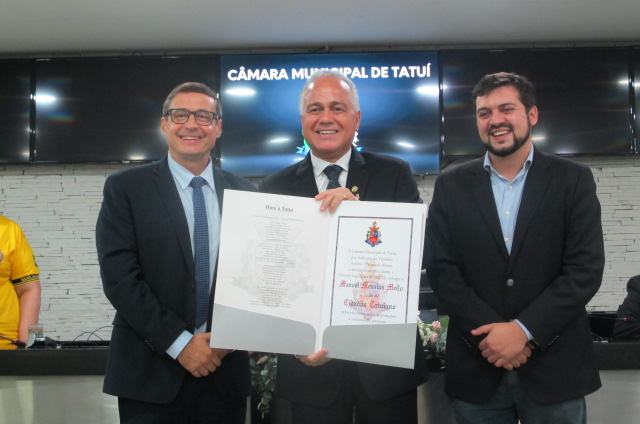 Dia 30 de novembro, Manoel Messias de Mello, diretor internacional do Lions Clube, recebeu o título de “Cidadão Tatuiano”, em cerimônia na Câmara Municipal de Tatuí, presidida por Eduardo Dade Sallum (PT). A honraria foi outorgada por iniciativa do vereador Antonio Marcos de Abreu (PSDB), pelo empenho de Manoel Messias na aprovação de recursos solicitados pelo Lions Clube de Tatuí para o Banco de Sangue “Fortunato Minghini” e para a Santa Casa de Misericórdia de Tatuí. Estavam presentes Sandra Mello, esposa do homenageado, Rubens Mesadri e Marilene, Christian Pereira de Camargo e Beatriz, Marisa Bueno de Campos Almeida, Marcos Antônio de Almeida, Cida Millen, Daniel de Almeida Cubas, Jacqueline Millen de Miranda, João Benedito Batista e associados do Lions de Tatuí.