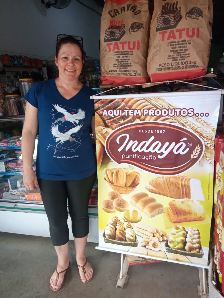 Débora Simões (foto), do Mini Mercado Simões, comercializa a linha completa de produtos da Indayá. Pães e biscoitos doces ou salgados, panetones e chocotones são algumas das especialidades da Fábrica Indayá. O Mini Mercado Simões fica na Rua Vereador Benedito Eugênio dos Santos, 145, Jardim Palmira – Tatuí. Fone: (15) 99695-4433.