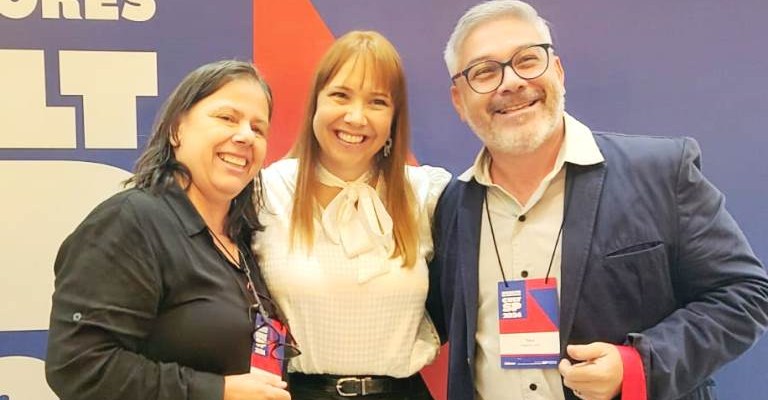 Foto: Maria Augusta Barbará e Rogério Vianna ao lado da secretária estadual da Cultura, Marília Marton, no Encontro de Gestores, em São Paulo.