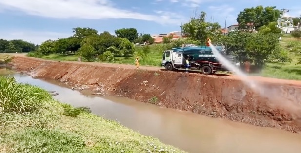 Prosseguem os trabalhos de limpeza e desassoreamento do Ribeirão do Manduca em uma extensão de 5,3 quilômetros em 19 trechos, com início na Praça Mário Cóscia, no Jardim Wanderley, até a Rua Chiquinha Rodrigues, na Ponte do Jardim Lírio. Os serviços ocorrem através do Programa Estadual “Rios Vivos”. A Prefeitura de Tatuí foi contemplada no ciclo 2023-2024 deste programa, desenvolvido pelo Departamento de Águas e Energia Elétrica (DAEE), autarquia da Secretaria de Meio Ambiente, Infraestrutura e Logística do Governo do Estado de São Paulo. O Programa “Rios Vivos” está inserido no Plano Estadual de Meio Ambiente e seu objetivo é revitalizar as margens e desassoreamento de cursos d’água, com a retirada de sedimentos carreados pelas chuvas, minimizando o risco de enchentes nos centros urbanos. Fabiana Grechi, secretária municipal do Meio Ambiente, destaca que diversos bairros tatuianos serão beneficiados. “Estamos deixando o leito do ribeirão cada vez mais limpo e mais profundo, para evitar o transbordamento das águas”, explica. Em alguns pontos, segundo a secretária, a retirada de lama e sujeira chega a 1,70 metro. (C/FOTO)
