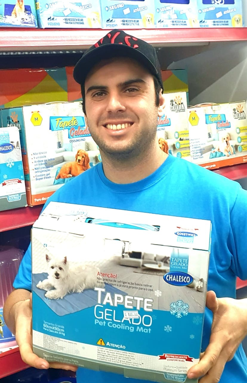 Quem tem o maior estoque, tem que oferecer o melhor atendimento! Venha conferir. Fernando, colaborador da Center Cão, recomenda o Tapete Gelado Pet Cooling Mat para seu Pet se refrescar neste verão que continua forte. Seu animal vai adorar. O tapete gelado contém um material interno que é ativado pelo peso e a pressão do animal de estimação. Esse material absorve o calor do corpo do pet e, em seguida, dissipa esse calor para o ambiente, mantendo a superfície do tapete fresca ao toque. Center Cão o hipermercado do seu pet. Avenida Dr. Salles Gomes, 156, Tatuí. WhatsApp: (15) 99634-3346 e 3259-3099.