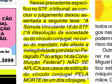 Na edição do dia 17 de fevereiro, este jornal foi taxativo e ainda reproduziu a íntegra da Tese do Supremo Tribunal Federal (print anexo) e escreveu: “Isso significa, portanto, que parentes da saudosa prefeita Maria José Vieira de Camargo podem disputar a eleição de 2024”.