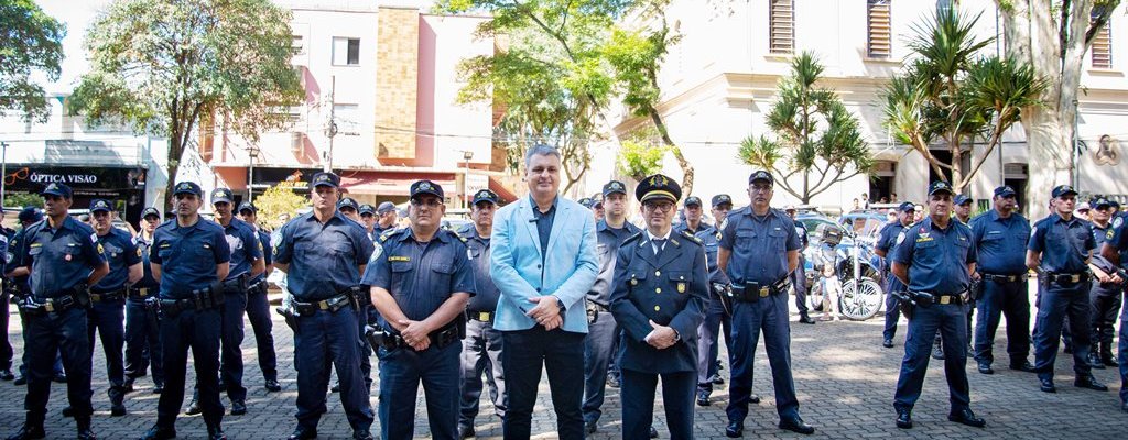 Lembrando os 28 anos de atuação da Guarda Municipal – que iniciou com 42 integrantes e hoje conta com 131 – foram homenageados oito GCM’s pelo cumprimento de suas missões, que se aposentaram na corporação. São eles: Reginaldo Pires de Paiva, Sergio Armando de Morais, Geraldo Martins de Oliveira, Armindo de Moura, Eduardo Teixeira dos Santos, Claudio Faustino Vieira, Wilson Correa e José Francisco Soares. Na sequência, os 36 guardas aprovados em concurso interno da corporação receberam as novas divisas. Os promovidos são estes: