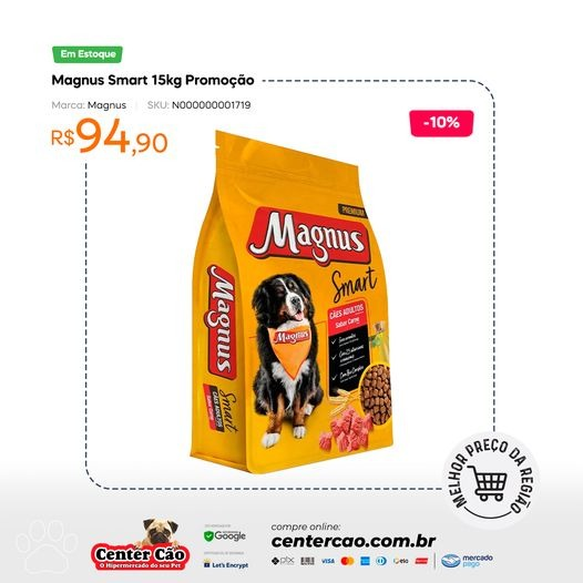 Marcelo de Paulo chama a atenção para a Super Promoção Magnus Smart 15 kg por R$94,90! Magnus Smart. É a ração ideal para cães adultos, com uma fórmula exclusiva que promove saúde e bem-estar. Contém 23 vitaminas e minerais, Ômegas 3 e 6, biotina e zinco orgânico para uma pelagem saudável e brilhante. Além disso, sua proteína, de alto valor agregado, garante maior absorção e aproveitamento pelo organismo. Com ingredientes que auxiliam no equilíbrio da flora intestinal e sem corantes artificiais, é a escolha perfeita para seu cão! Garanta agora e mantenha seu pet saudável e feliz. Esta oferta é somente enquanto durar o estoque! Center Cão – o hipermercado do seu pet. Avenida Dr. Salles Gomes, 156, Tatuí. WhatsApp: (15) 99634-3346 e 3259-3099. #MagnusSmart #RaçãoParaCães #PromoçãoPet