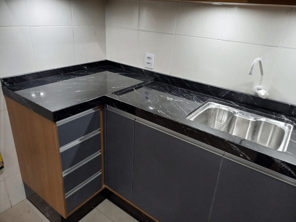 João Francisco, proprietário da Marmoraria Soares, informa que se você procura as mais belas pedras de mármore ou granito, para dar o melhor acabamento em sua casa, seu estabelecimento é o local ideal. Na foto, pia e sapata feita no Granito preto Via Láctea. Uma pedra na tonalidade preta, mais bonita pelo brilho que apresenta. Dá ar de sofisticação no ambiente trabalho. É feito com muito amor e dedicação, como tudo que o estabelecimento faz. O trabalho começa desde a medição, corte, colagem e acabamento perfeito! Os produtos para o novo visual da sua casa estão na Marmoraria Soares. Rua Teófilo Andrade Gama, 1000, Tatuí. Fone: (15) 99198-1308.