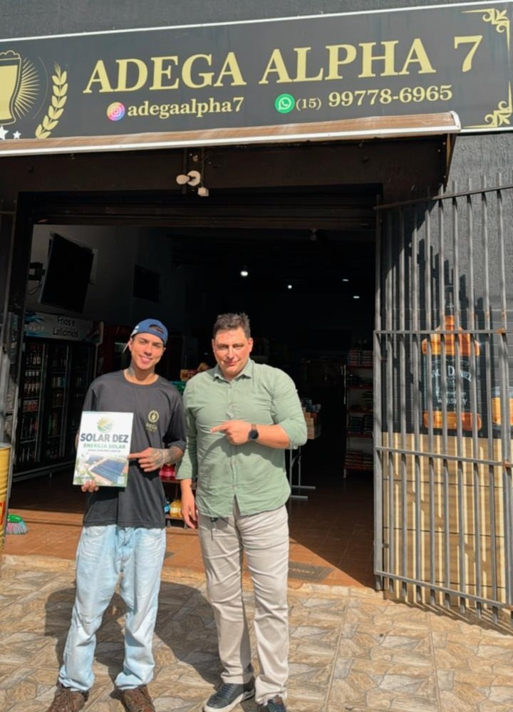 A Solar Dez continua a conquistar o mercado regional. A energia solar é sinônimo de economia, modernidade e sustentabilidade. A Adega Alpha 7, em Cesário Lange, já aderiu à nova energia. E o proprietário da Solar Dez, William Fiusa, aparece nas fotos com Leonço e Kléber Péricles, também de Cesário Lange, seus novos clientes.