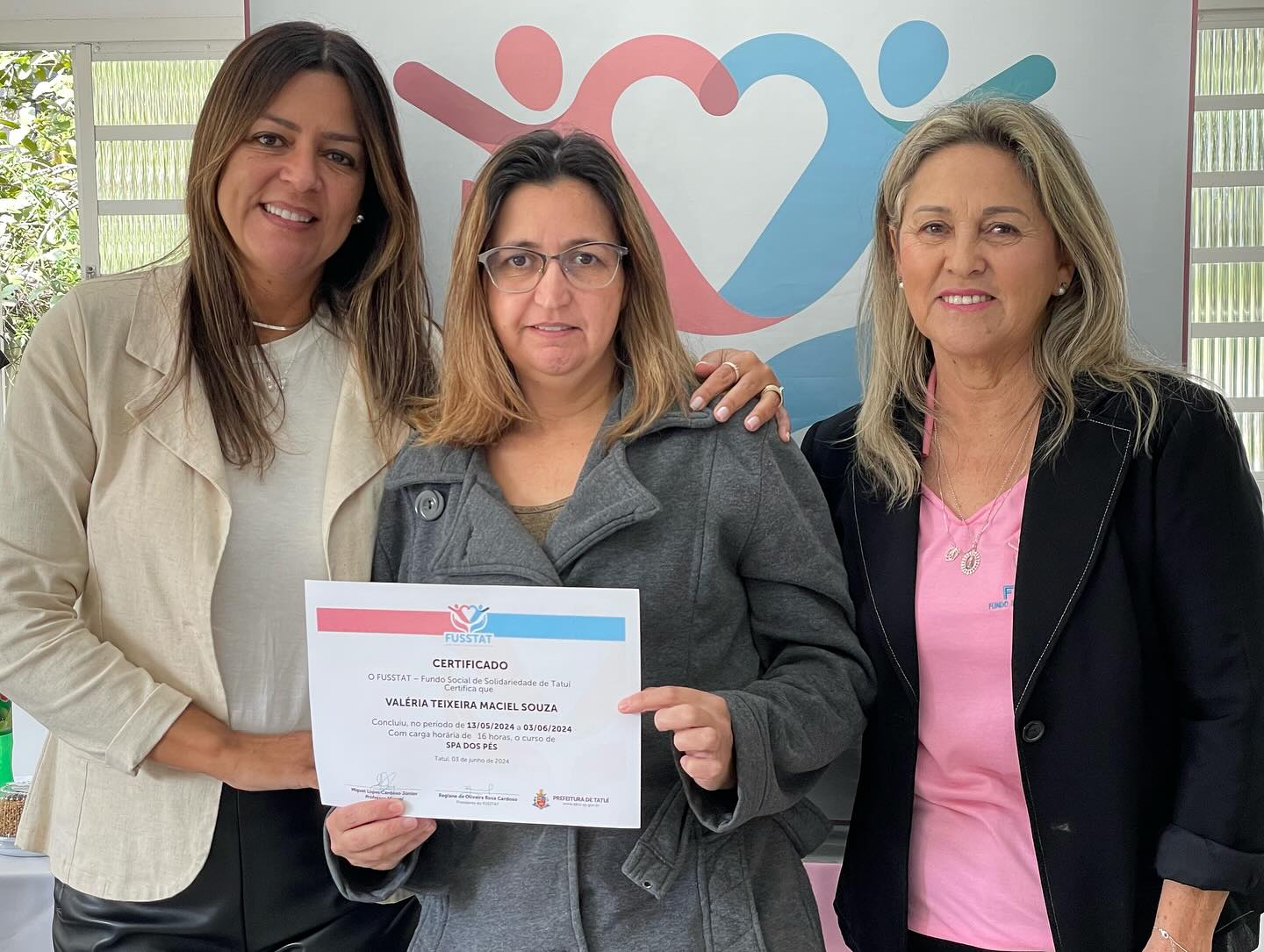 A primeira dama Regiane Rosa, presidente do Fundo Social de Solidariedade, está com a agenda lotada em junho, para participar de formaturas de cursos desenvolvidos pela sua equipe. Dia 3 de junho, compareceu no final do curso “Spa para os pés”, no Núcleo de Capacitação do CDHU, em Tatuí.