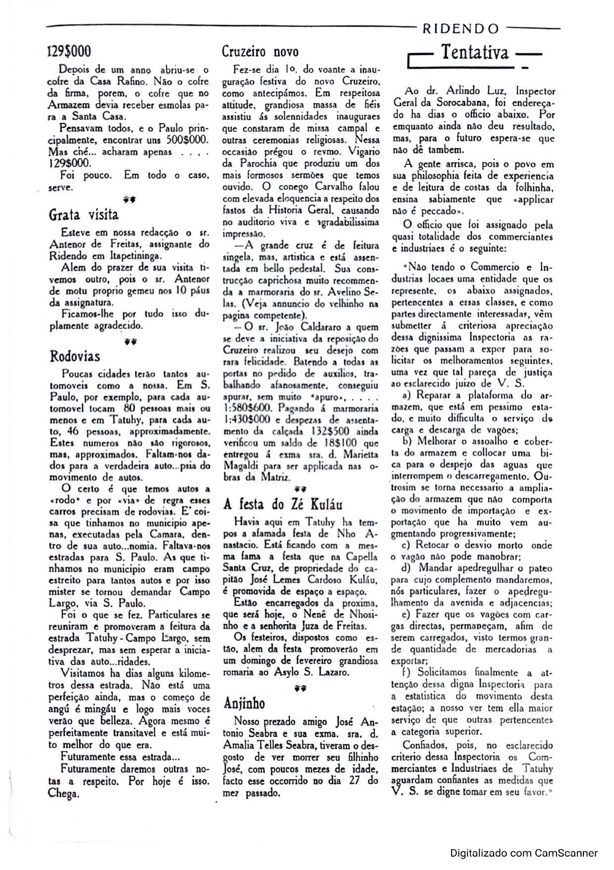 Dia 13 de junho, a juíza Daniele de Oliveira Menezes Pinto Rafful Kanawaty, da Primeira Vara Cível da Comarca de Tatuí, concedeu medida liminar e interrompeu a obra de mudança no Cruzeiro, em frente ao Cemitério Cristo Rei, na Avenida das Mangueiras. A decisão foi prolatada em Ação Popular, ajuizada por Carlos Orlando Mendes Filho, em desfavor do município de Tatuí que, em 6 de junho, iniciou a remoção do cruzeiro instalado em frente o cemitério, na Avenida Cônego João Clímaco (Mangueiras). O autor alega que neste local está um símbolo histórico, reinstalado em 1925, que dá nome à Rua do Cruzeiro. Sem consulta ao Condephaat, o prefeito Miguel Lopes, sem qualquer justificativa plausível para tal continuidade e negou fornecer o processo administrativo para realização da obra no cruzeiro, descreve a sentença.