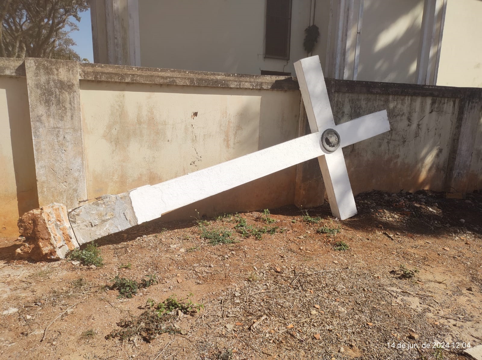 A antiga cruz, anteriormente parte do marco do Cruzeiro, será restaurada e exposta em local seguro e de destaque dentro das dependências do Cemitério Cristo Rei.