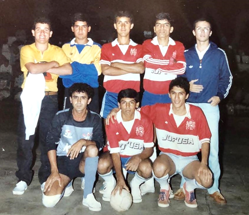 A fotografia acima, retirada de nossos arquivos digitais, foi registrada em 1987 e mostra a equipe da Jufusa, que participava do “Campeonato Municipal de Futebol de Salão” na extinta quadrinha municipal, ao lado do Conservatório. Era um belo time, com talentos que destacavam-se não apenas no salonismo, mas também no futebol de campo. Confira a escalação: em pé da esquerda para a direita, aparecem Marcinho Soares, Marquinho Pontes, Ede, Onésimo e Marcelo. Agachados, na mesma ordem, estão Barata, Osmair e Vaguinho. O tempo passa, lá se vão 37 anos de saudade…
