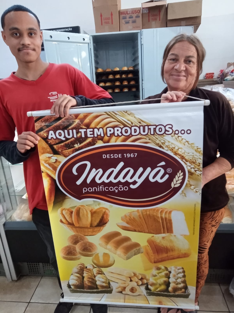 Thayrone e Maria Benedita (foto), do Silas Supermercado, informam que o estabelecimento revende a linha completa de produtos Indayá. Pães e biscoitos doces ou salgados, panetones, chocotones e outros alimentos que fazem parte da linha de fabricação da marca mais deliciosa de Tatuí. O Silas Supermercado fica na Avenida Zilah de Aquino, 780. Fones: (15) 99731-0060 e (15) 3251-0060.