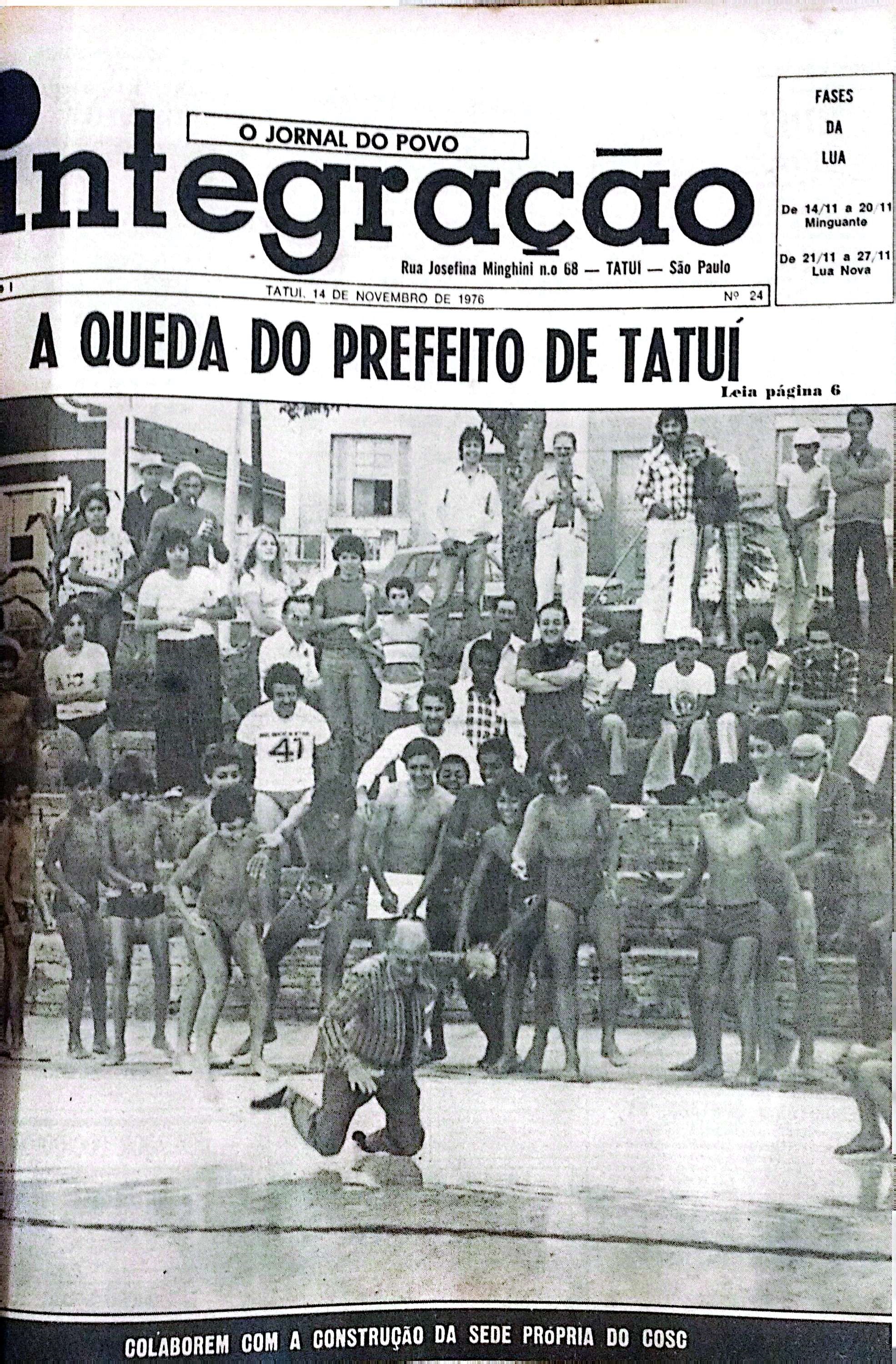 Esta foto foi publicada na edição de 14 de novembro de 1976, um dia antes da eleição, na primeira página, com o título: A QUEDA DO PREFEITO DE TATUÍ.