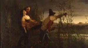 Garibaldi e alguns amigos carregaram Anita por quilômetros entre os pantanais, fugindo das tropas austríacas que os perseguiam com ordem de fuzilá-los. Esta cena foi representada na tela do pintor Pietro Bouvier.