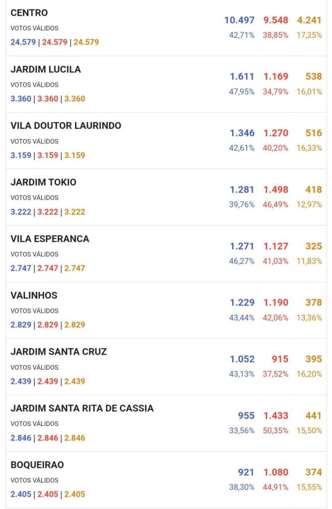 Veja no link abaixo todos os resultados em Tatuí: