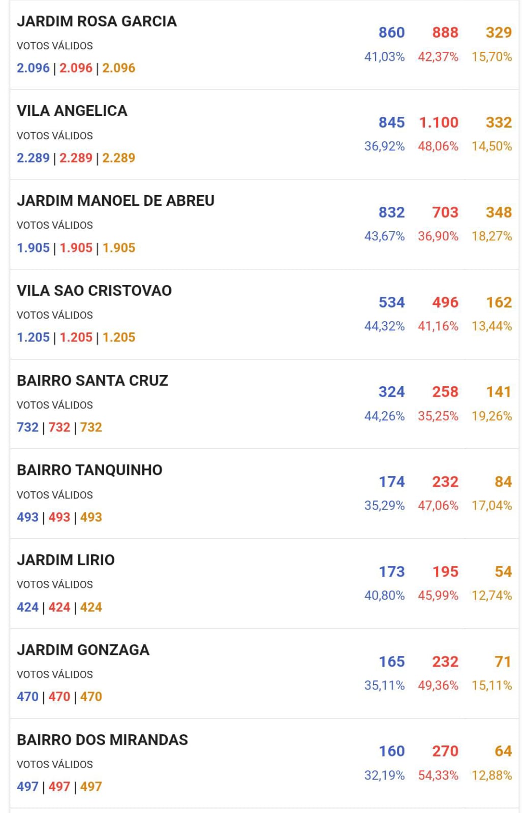 Veja resultado de prefeito entre Miguel, Alessandra e Sallum por bairros abaixo.