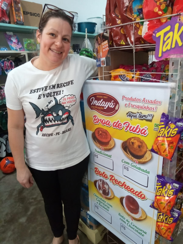 Débora Simões (foto) do Mini Mercado Simões. O estabelecimento revende a linha completa de produtos Indayá. Pães e biscoitos doces e salgados, broas de fubá tradicional ou com goiabada, bolo recheado de chocolate com cobertura e recheio ou bolo de cenoura com chocolate, e outros alimentos que fazem parte da linha de fabricação da marca mais deliciosa de Tatuí. O Mini Mercado Simões fica na Rua Vereador Benedito Eugênio dos Santos, 145, Jardim Palmira. Fone: (15) 99695-4433.