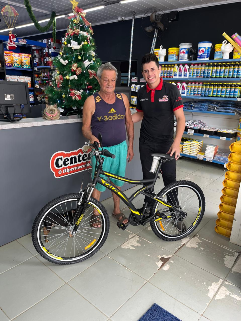Na foto Rodrigo, gerente da Center Cão e o senhor João Batista Cunha, o grande ganhador de uma linda Bike na promoção de Natal Center Cão e Special Dog. Vale a pena participar das promoções da Center Cão! Avenida Salles Gomes, 156, Tatuí. Fone/WhatsApp: (15) 99634-3346 e 3259-3099.
