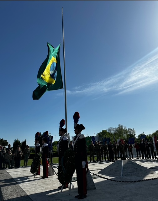 Entre 23 e 25 de abril de 2025, ocorreram as cerimônias alusivas aos 80 anos da chegada da Força Expedicionária Brasileira (FEB) ao teatro de operações peninsular. As cerimônias em diversas cidades marcaram a participação dos pracinhas em favor da libertação italiana do nazifascismo. Felonica, Santa Maria a Monte, Staffoli, Pistoia, Porreta Terme. Gaggio Montano, Guanella, Barga e Montese foram algumas das cidades percorridas pelo Ministro do Gabinete de Segurança Institucional, general Amaro Santos e por comitivas do Congresso Nacional, do Superior Tribunal Militar, do Comando do Exército, chefiada pelo comandante general Tomás Paiva, de associações ligadas à memória da FEB e de familiares dos ex-combatentes. Em Pistoia, no dia 23/4, o Embaixador Renato Mosca acompanhou a cerimônia organizada no Monumento Votivo Militar Brasileiro, uma importante homenagem aos nossos pracinhas. (Texto publicado pela Embaixada do Brasil em Roma)