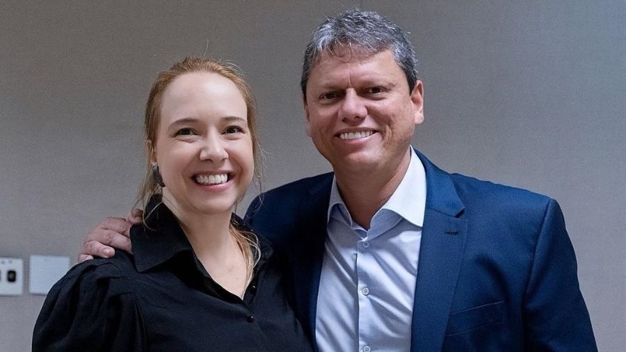 .Secretária Marília Marton e governador Tarcísio de Freitas.