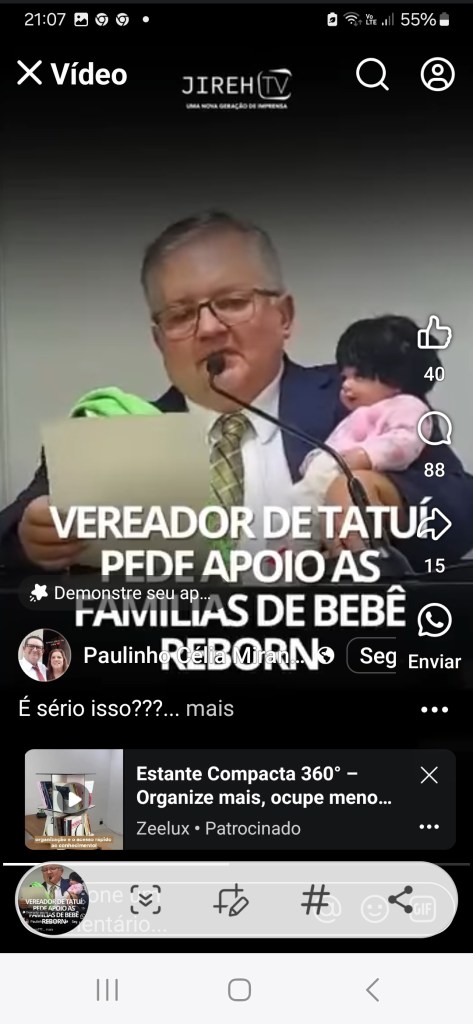 Pela reação nas redes sociais, a iniciativa do vereador não foi feliz e não agradou nem um pouco quem viu a cena. Houve severas críticas à sua atitude. Os reborn – renascer em inglês – são bonecos feitos à mão, para se parecerem com bebês reais, sendo conhecido por detalhes hiperrealistas e inclui cabelos implantados, olhos de vidro e pele macia. Ao que tudo indica, a intenção do parlamentar pode ter sido tratamento para crianças com outras síndromes. E, por falta de conhecimento defendeu a tese do “bebê reborn”.