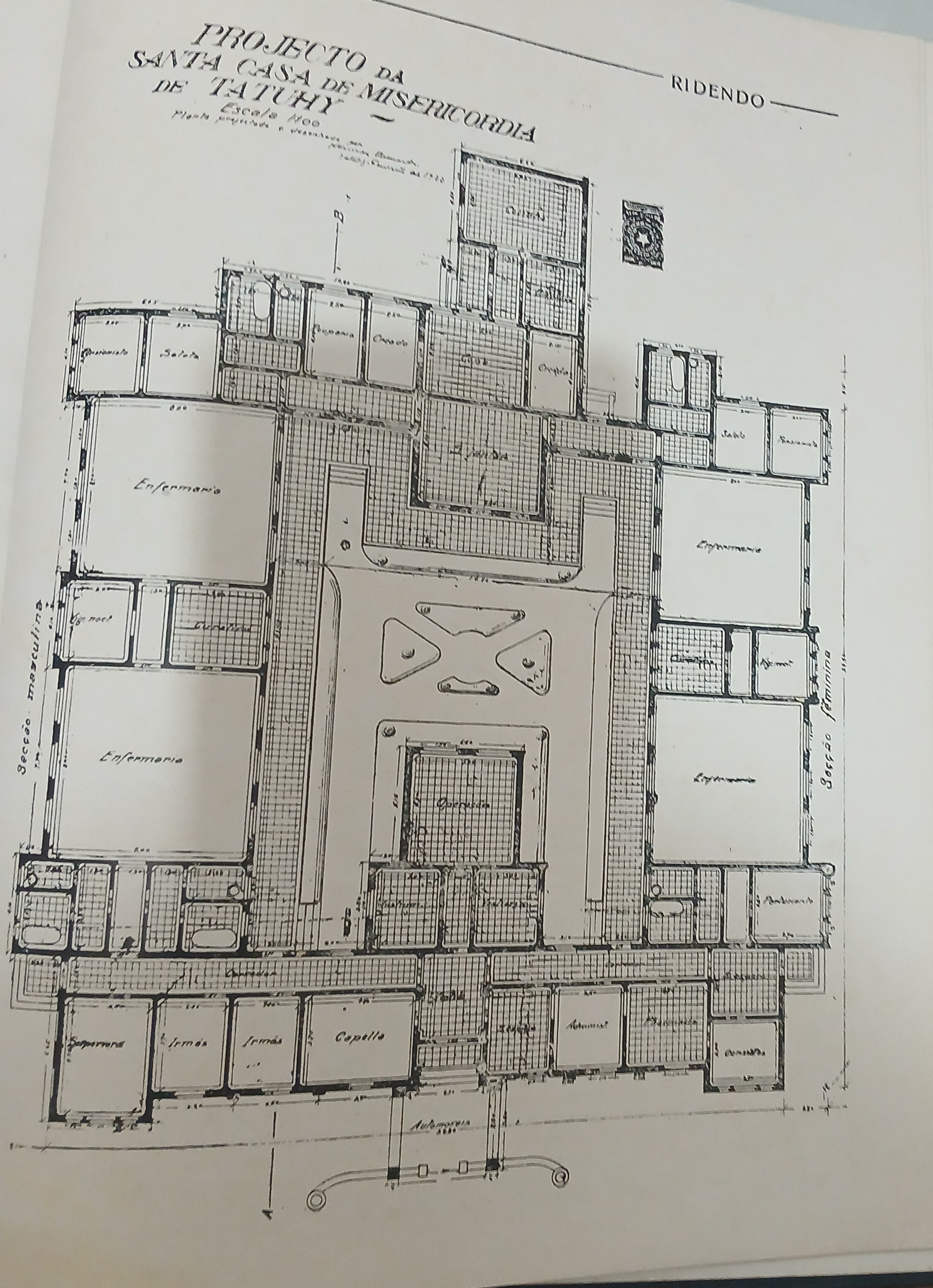Em 1917, o diretor José Pereira de Almeida iniciou os preparativos para construção da Santa Casa. O local escolhido foi onde hoje está instalado o hospital. Esclarece o “Ridendo” que “em 1922 foi dado o toque final na planta, fechou-se parte da Rua Brigadeiro Jordão, limitados pelas ruas Maneco Pereira, Cõnego Demétrio, Cônego João Clímaco e Capitão Lisboa”. Nesta mesma edição, o jornal detalha todos os valores gastos na obra e demonstra a transparência como eram utilizadas as verbas para a construção. E, em reconhecimento aos diletos filhos de Tatuí, o semanário informa: “A Carlos Orsi é que devemos quase que inteiramente a construção da Santa Casa… Esse homem não temeu prejudicar seus negócios particulares e adiantou o dinheiro necessário para conclusão desse majestoso templo da caridade”. (Acima fotos da planta e do prédio da Santa Casa, publicada pelo Ridendo em 9/8/1925).
