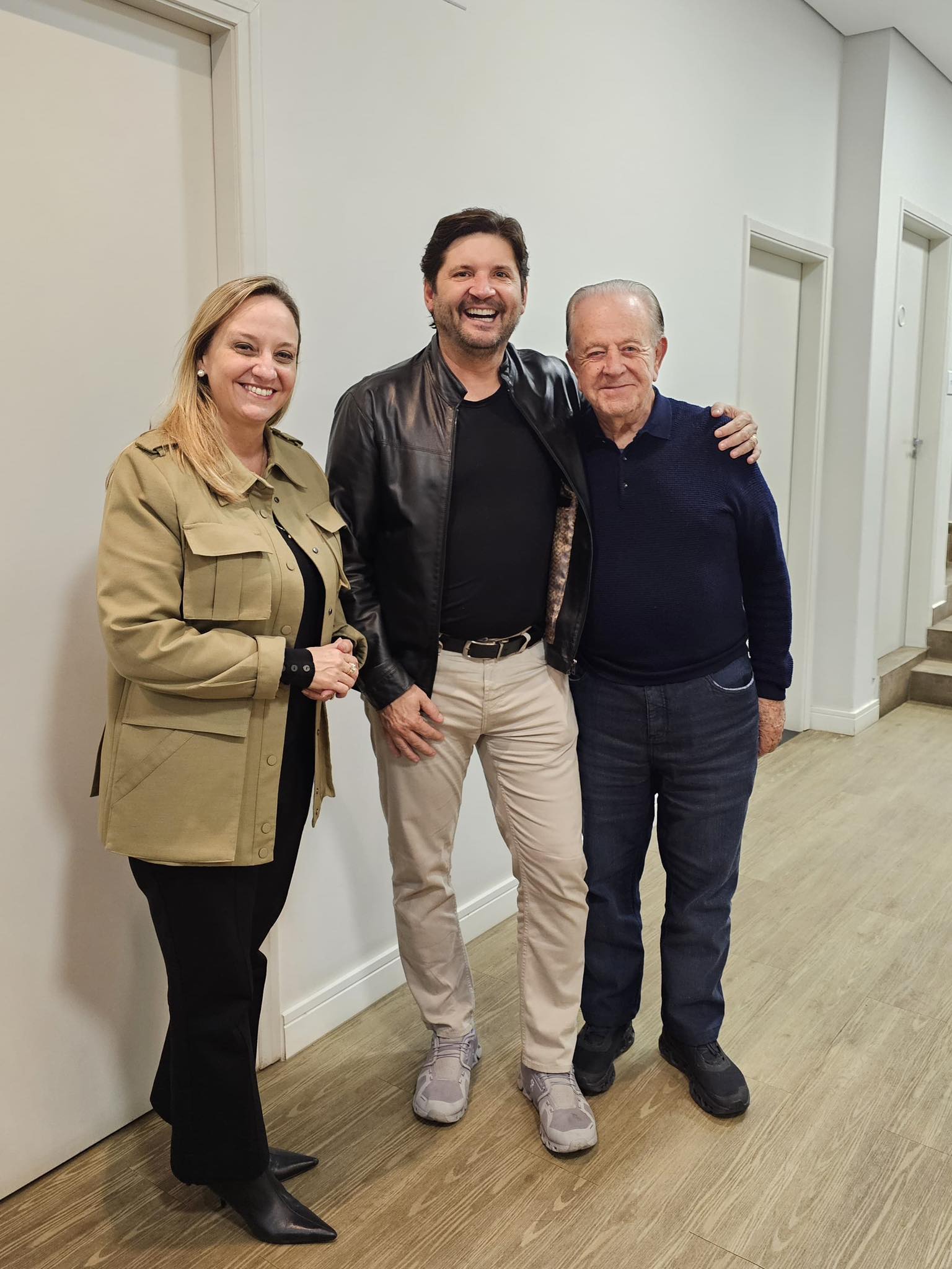 Na Central de Rádio, Alessandra, ex-prefeito Gonzaga e deputado André do Prado, presidente da Alesp.