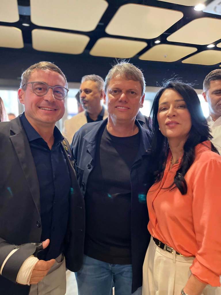 Na festa do doce, vice-prefeito Antonio Marcos de Abreu, governador Tarcísio e a primeira dama Cristiane Freitas.