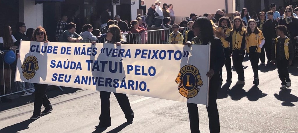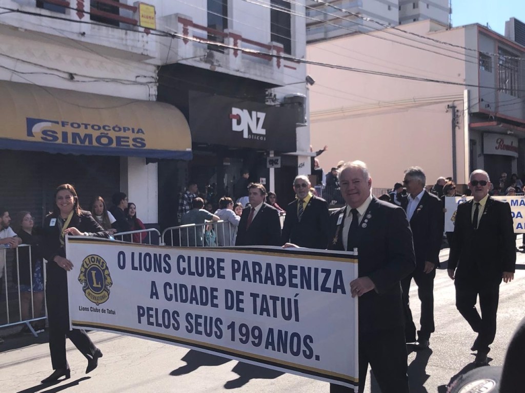 Dia 11 de agosto, centenas de jovens estudantes, representantes de clubes de serviço, indústria, comércio desfilaram na Rua 11 de Agosto, palco do desfile cívico de Tatuí, para comemorar 199 anos de emancipação político- administrativa do município. O Lions Clube de Tatuí desfilou com seus Integrantes, representantes dos Clubes de LEO (Alfa e Ômega), Distrito Múltiplo LEO LC, Leõezinhos e do Clube de Mães “Vera Peixoto”. Sob a coordenação de Arlindo Lisboa, foram destacadas as bandeiras de Tatuí (Fernando de Jesus Costa), Brasil (Paulo R. Conquista Alves), São Paulo (Jeferson Nedelciu), Lions Internacional (Altair Benedito Vieira) e o presidente Ademir Polis e Maria Lenice com o estandarte do clube. Christian Pereira de Camargo (ex-governador) e Beatriz Soares Amaro ostentaram uma faixa em homenagem à cidade. Desfilaram as integrantes do Clube de Mães “Vera Peixoto“. Outros destaques foram O LEO Clube Ômega (presidente Gustavo Antônio Lisboa), Distrito Múltiplo LEO LC (presidente Victor Antônio Lisboa), LEO Alfa Cidade Ternura (presidente Leonardo Amaro de Camargo) e os Leõezinhos CUB (presidente Anna Luiza Cristovam Nedelciu). A fotos foram enviadas ao Jornal Integração por Alzira Farah Loretti, coordenadora de divulgação do Lions.