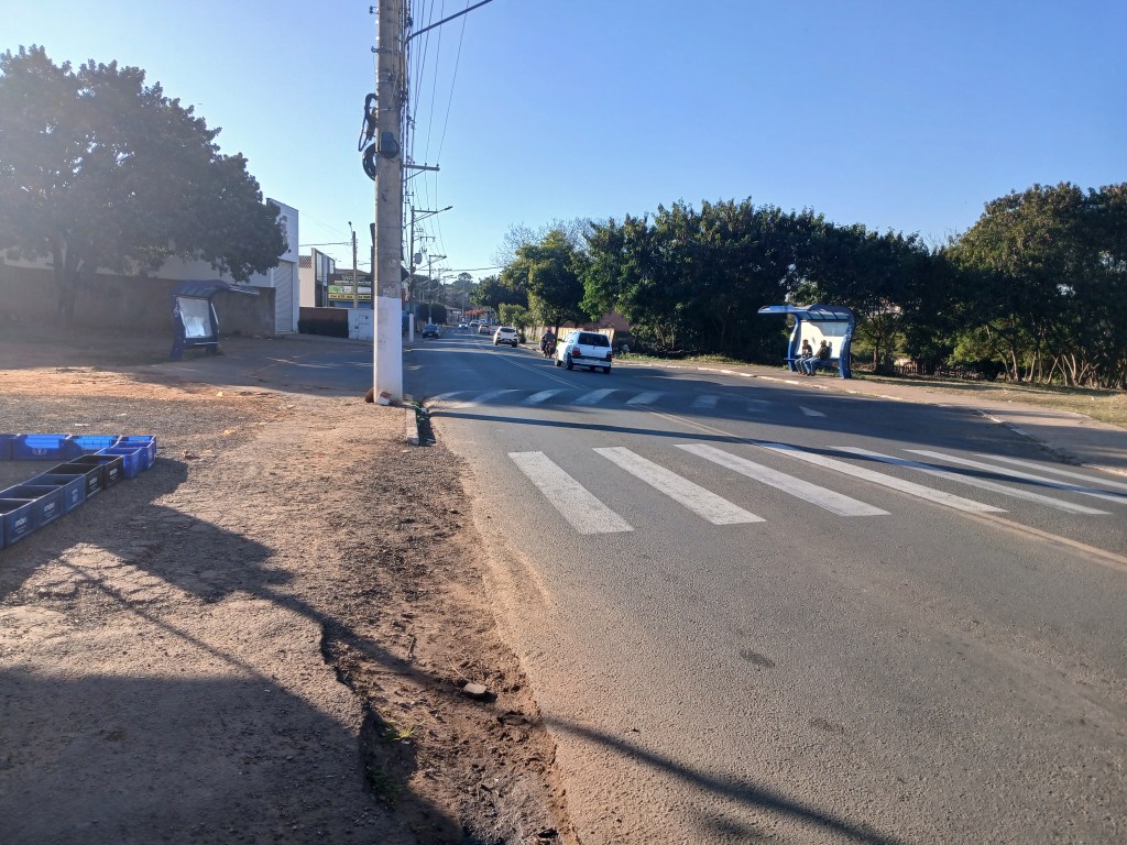 Na entrada da Vila São Lázaro, único trecho da via pública com faixa de segurança.