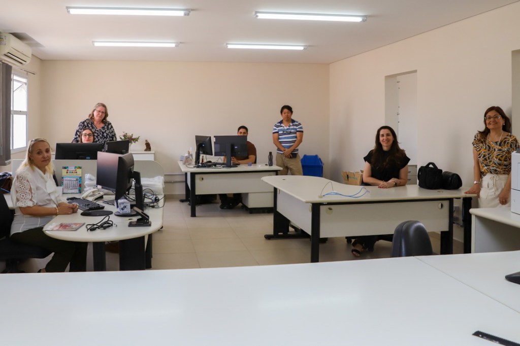 INAUGURAÇÃO – Dia 6 de outubro, a desembargadora Ana Pellegrina Lockmann, presidente do TRT-15, inaugurou a nova sede da Vara do Trabalho de Tatuí, na Rua 7 de Maio, 401. Na foto, a presidente, juízas Christina e Ana Paula e Renan Cortez, presidente da Câmara Municipal de Tatuí. Presentes juiz Francisco Duarte Conte (presidente da Amatra XV), Marlene Maria Garcia (presidente da OAB de Tatuí. Os funcionários do judiciário trabalhistas estão na outra foto.