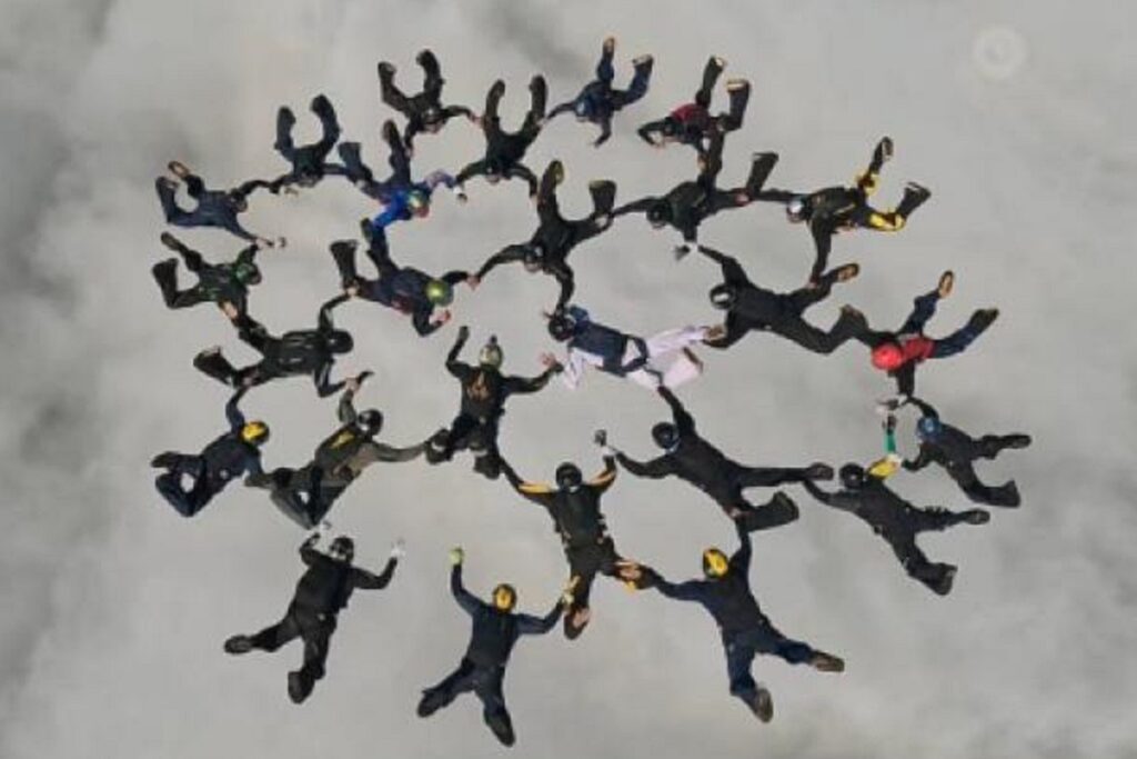 A equipe, composta por 26 militares das Forças Armadas, estabeleceu o Recorde Sul-Americano da Federação Aeronáutica Internacional (do francês Fédération Aéronautique Internationale – FAI) na modalidade Formação em Queda Livre (FQL), categoria Total Break Sequencial (TBS) 26-way, em dezembro, nos municípios de Boituva e Tatuí. O recorde foi oficialmente homologado após a execução de um salto composto por três formações sucessivas, separadas por quebras completas entre cada ponto. A manobra exige elevado grau de precisão, sincronismo, confiança mútua e rigorosos padrões de segurança. (Juliano Gianotto – Força Aérea Brasileira – FAB – 14/1/2026). Assista o vídeo: