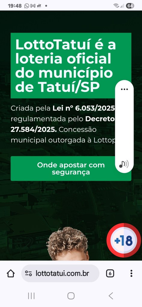 Ao pesquisar no Google sobre a informação da Lottopro descobre-se que a empresa mantém uma unidade em Tatuí. Essa “Loteria Municipal”, aprovada pela Câmara Municipal, já está preparada para transformar a cidade na “Las Vegas Caipira”. Um incidente de percurso paralisou o funcionamento dessas jogatinas. Dia 3 de dezembro, o ministro Nunes Marques, do Supremo Tribunal Federal (STF), suspendeu a eficácia de todas as leis municipais que criaram loterias próprias ou autorizaram apostas de quota fixa – incluindo as chamadas bets – e determinou o encerramento imediato das operações em curso. A decisão, em caráter liminar, veda a prática para os 5.500 municípios brasileiros e ainda será submetida ao plenário da Suprema Corte. Nunes Marques entendeu que a criação de loterias municipais viola a Constituição Federal, por se tratar de tema de interesse nacional. Nos “prints” abaixo, o site preparado para exploração do “jogo de azar”, implementado pelo prefeito municipal de Tatuí, com a finalidade de incentivar o vício na população.